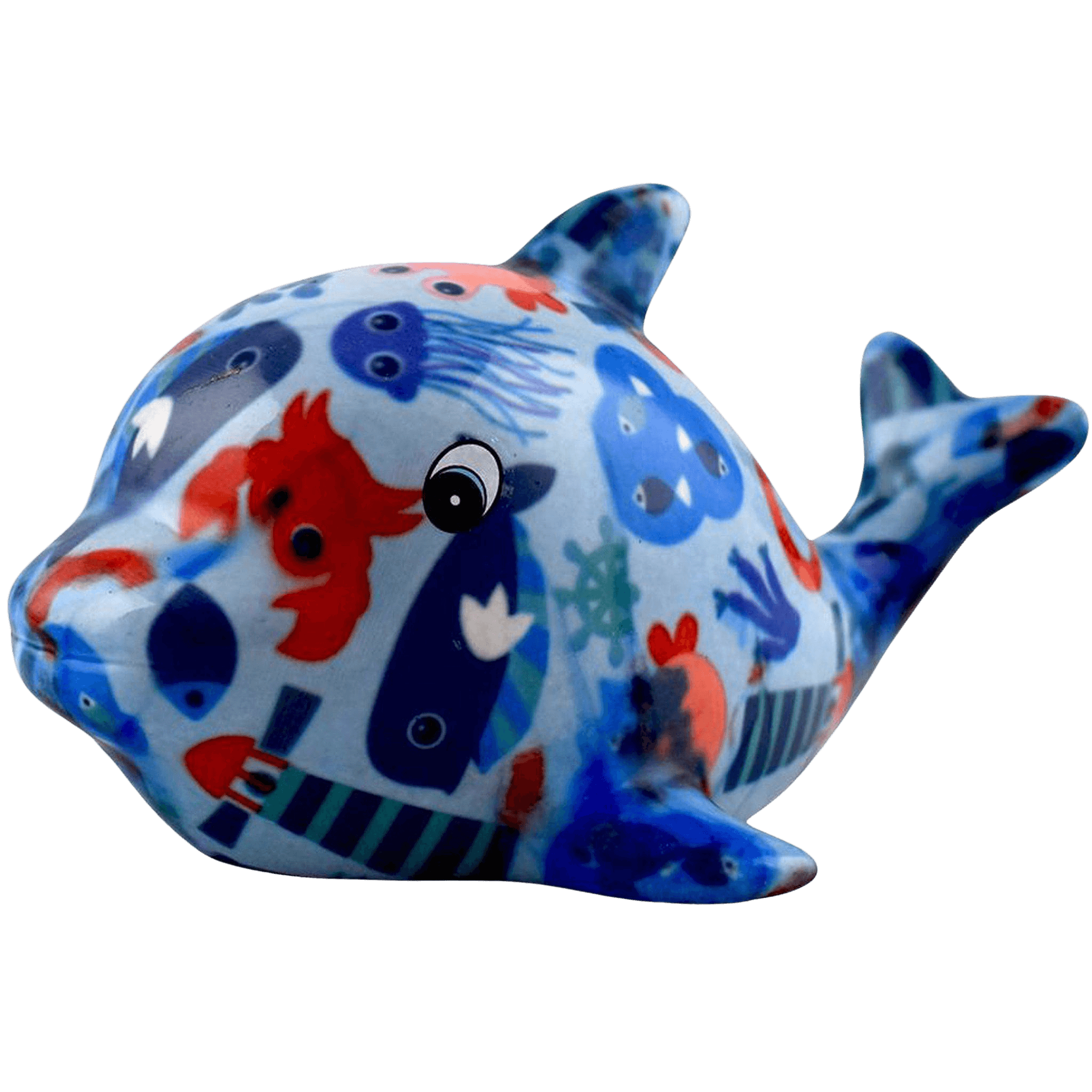 The ocean cannot be deep enough for Twisty, our 'Splashing Dolphin'. The deeper the water, the better. He feels right at home among the other fish. Swimming around with them and discovering the ocean is what he loves doing. Dolphin Twisty is available as a piggy bank in size Small (S).