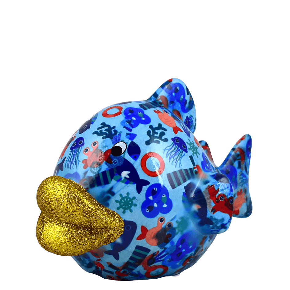 Kelly aime l'eau. En tant que "Colorful Bubbly Fish", vous pouvez toujours la trouver parmi les magnifiques coraux colorés, où elle est en sécurité et loin des dangereux filets de pêche. Avec ses amis, elle peut jouer aux meilleurs jeux d'eau pendant des heures. Fish Kelly existe en tant que tirelire dans les tailles Small (S) et Medium (M).